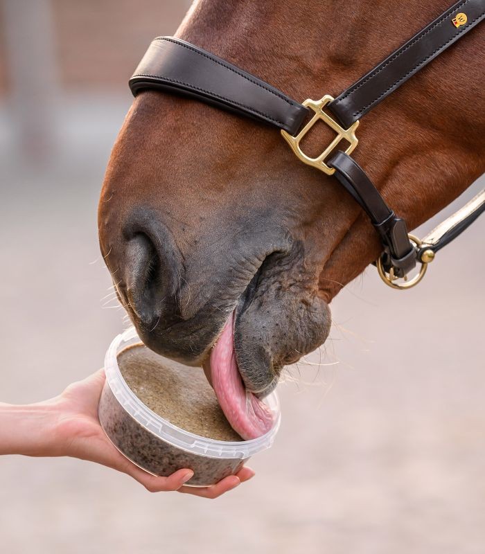 Sa texture à lécher favorise un comportement calme et apaisant, participant au confort mental du cheval.