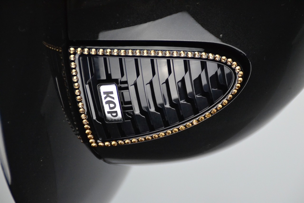 💫 Ses éléments distinctifs — grille, panneau frontal et panneau arrière — présentent des finitions contrastées par rapport à la surface brillante de la visière, offrant un subtil jeu d’ombres et de lumière qui rend ce modèle unique et harmonieux.