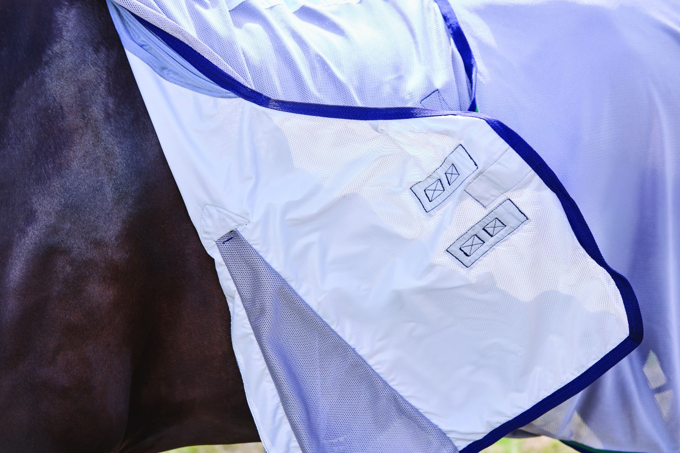 Offrez à votre cheval fraîcheur, confort et protection optimale pendant les journées chaudes grâce à la couverture anti-mouches ComFiTec Zephyr Plus Mesh. Son tissu à tissage ouvert respirant favorise une excellente circulation de l’air tout en protégeant efficacement contre les insectes et les rayons UV.