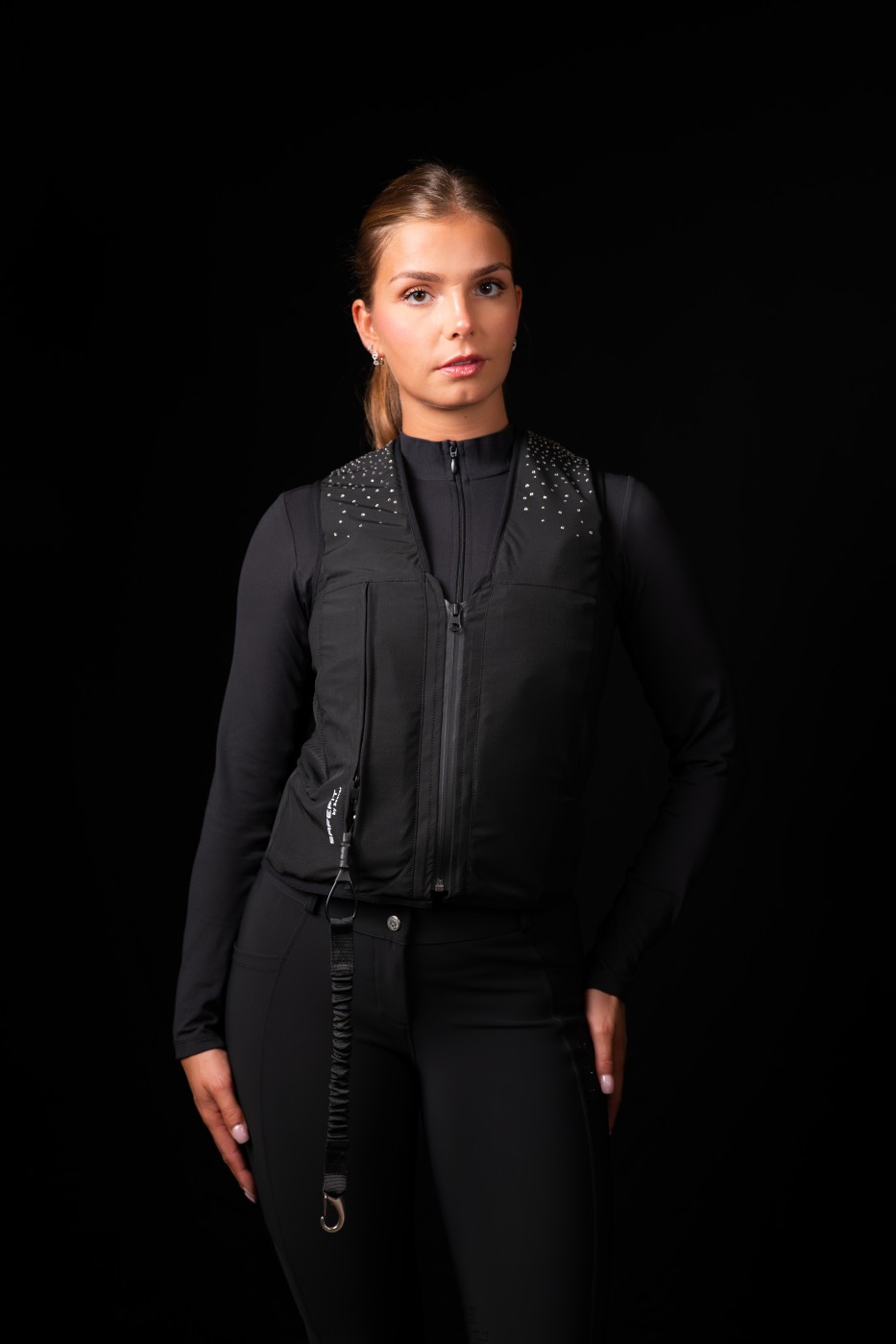 Avec sa coupe cintrée, SAFEFIT saura s’adapter à vos tenues d’équitation. En concours, il se fait discret sous les vestes compatibles et à la maison, pendant vos reprises, il se porte par-dessus votre doudoune d’hiver préférée ou alors, par dessus un t-shirt en plein été. L’occasion de montrer ses détails personnalisés !