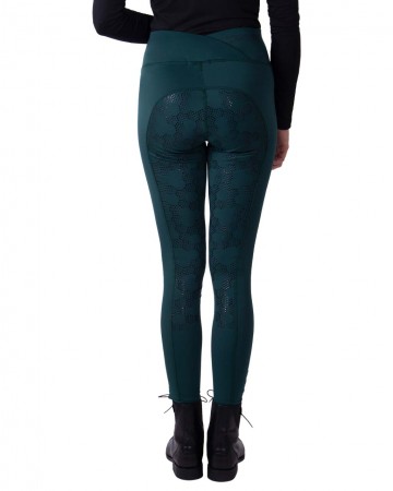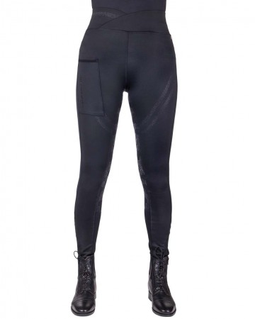Pantalon d'équitation sportif qui vous garde au chaud les jours de grand froid grâce à son intérieur doux et chaud. Les leggings d'équitation avec une bande accrocheuse sont décorés d'impressions en silicone sur les cuisses et comportent un motif antidérapant. Une poche pratique sur la cuisse droite vous permet de garder votre téléphone lorsque vous montez.