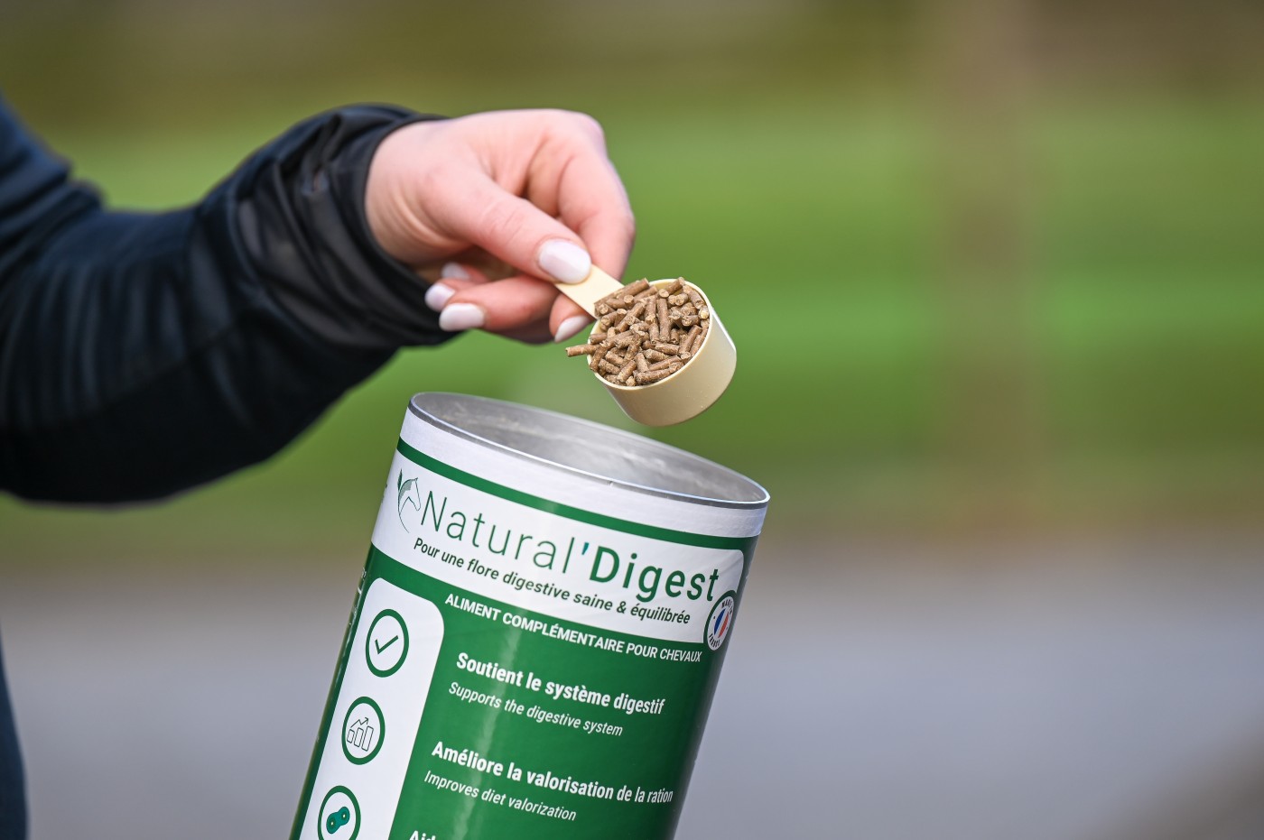 Natural’Digest est une source naturelle de prébiotiques spécifiques et d’algues qui permet de soutenir la flore intestinale du cheval, sous forme de granulés en pot d’1,2 kg et sac de 4,8 kg.