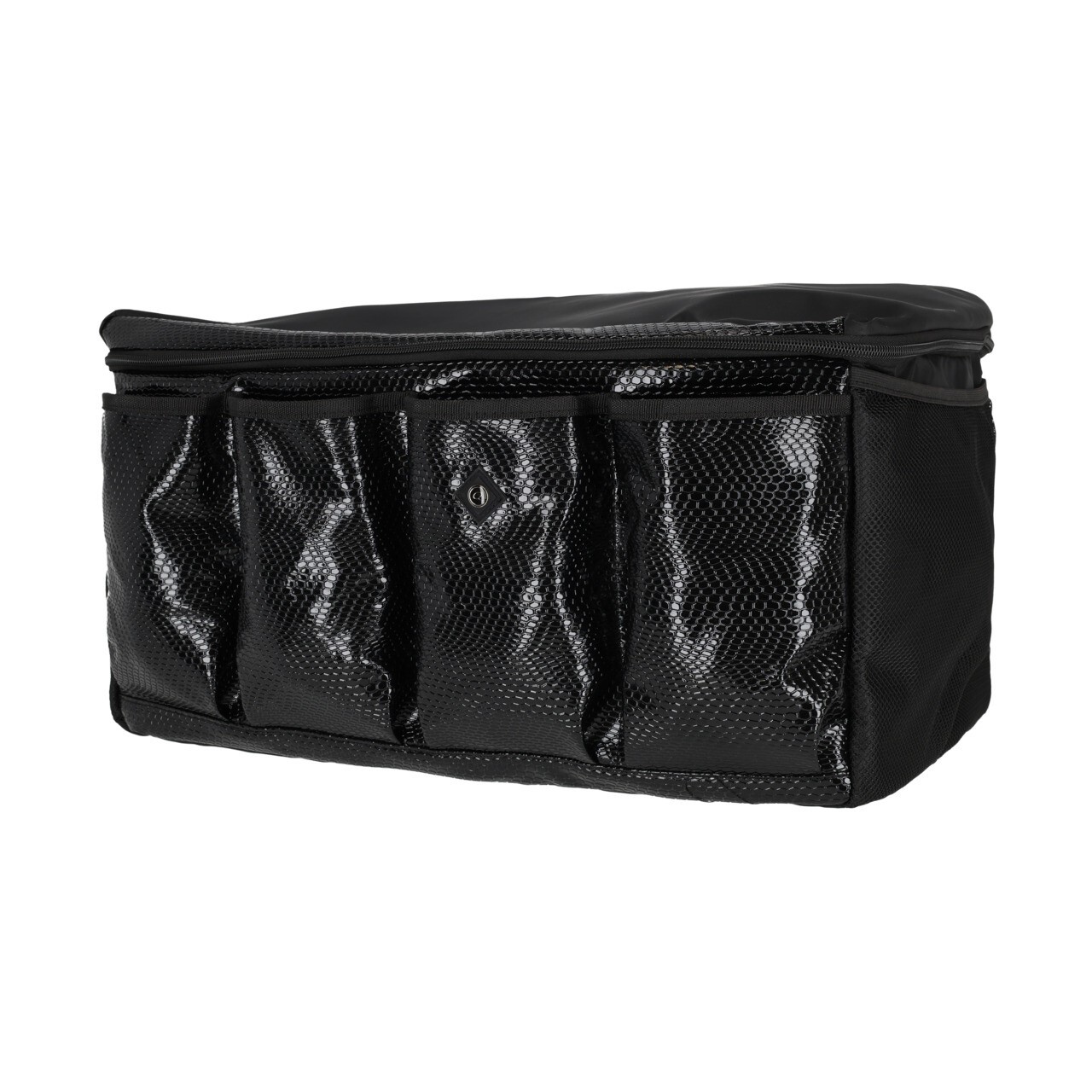 Organisez votre matériel avec style grâce à ce sac de pansage de luxe au superbe imprimé croco. Conçu pour répondre aux besoins des cavaliers exigeants, il offre un espace généreux pour ranger soigneusement brosses, guêtres, soins et tous vos essentiels d’écurie.